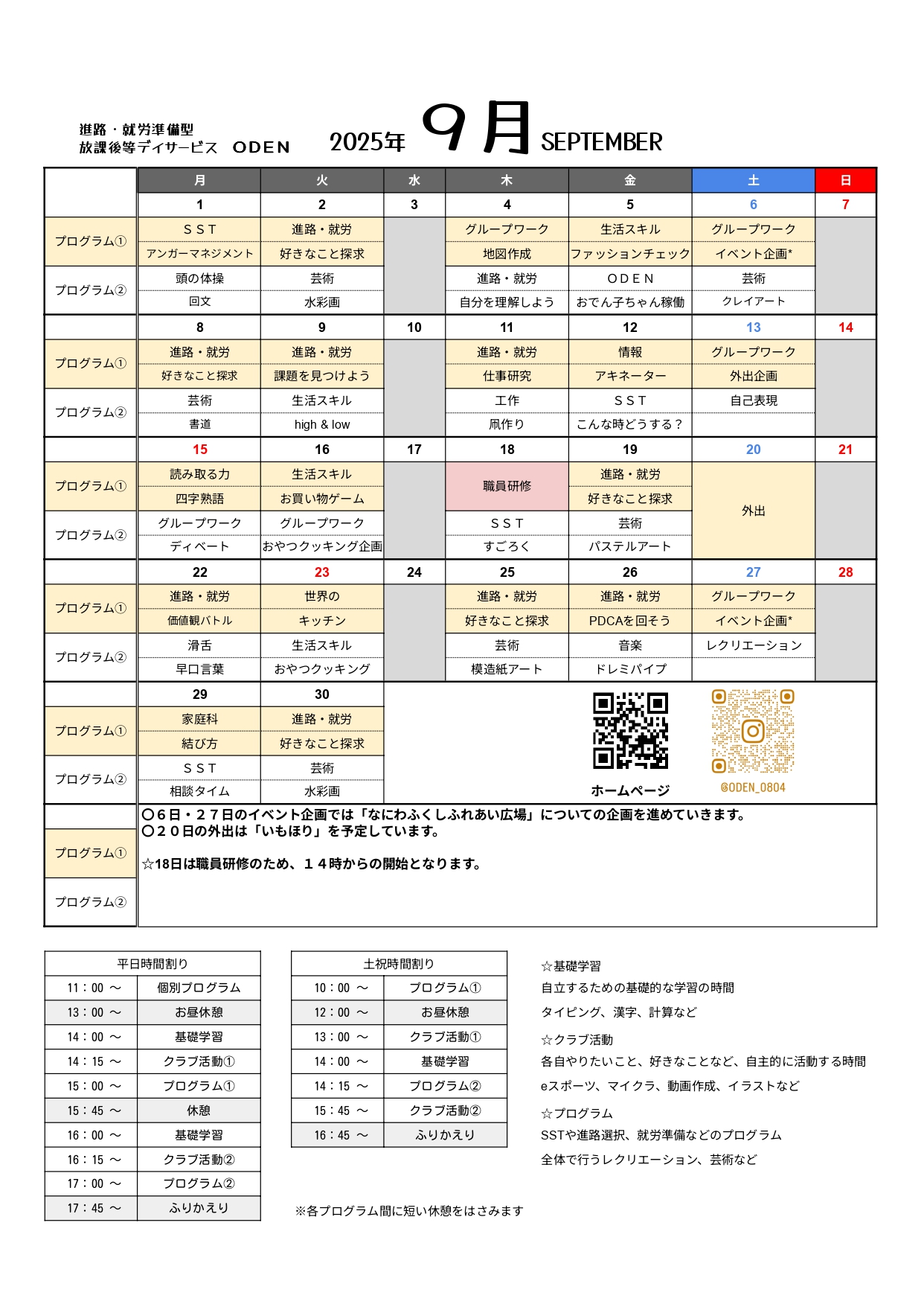 9月も楽しいプログラムを用意してお待ちしています(^^♪