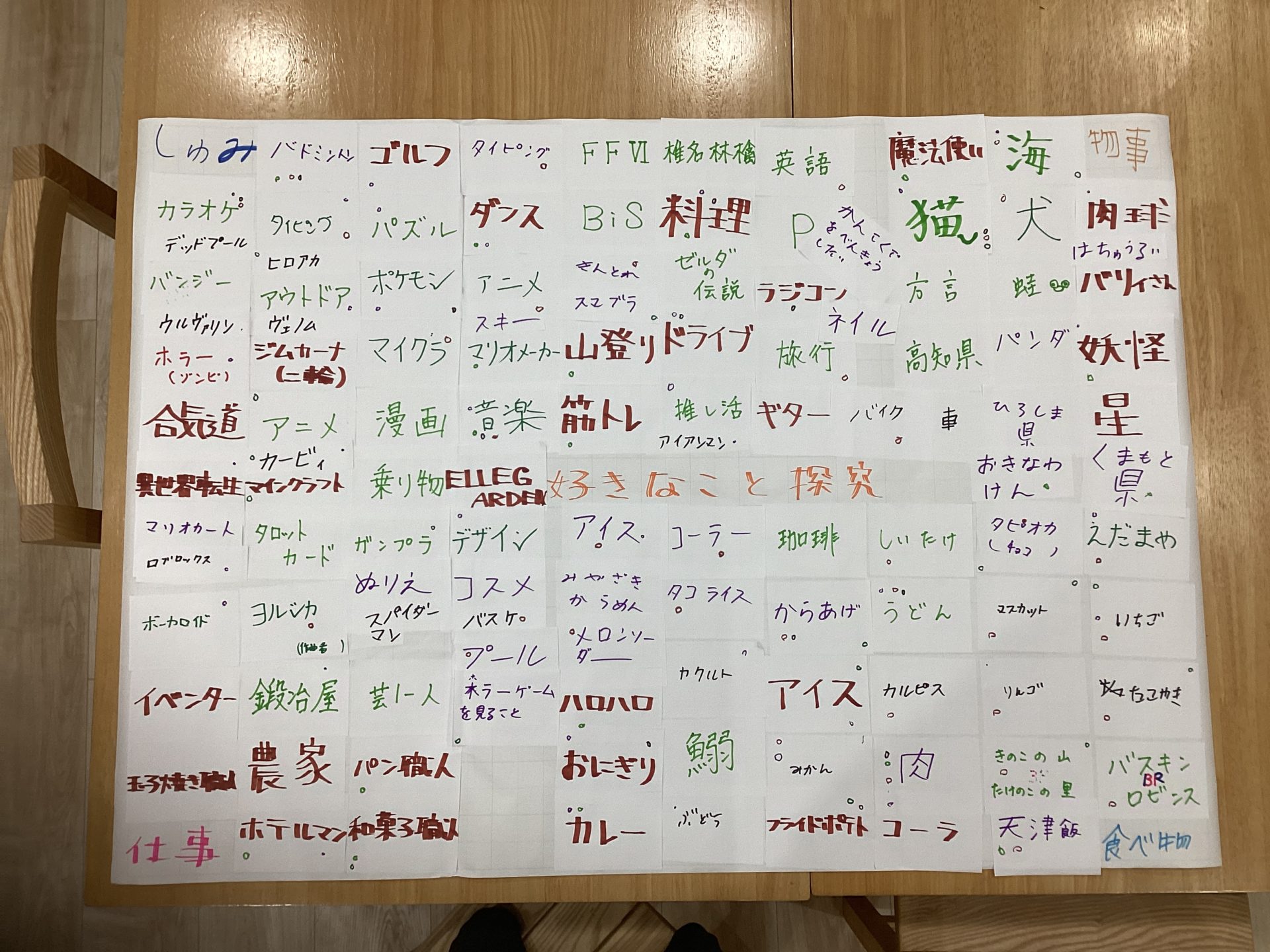 「ゲーム」や「アニメ」、「音楽」といった、今夢中になっていることから、「車」「スポーツ」といった昔から変わらず好きなもの、「武道」「料理」など、これから挑戦してみたいことまで、様々な「好き」の種が見つかりました。