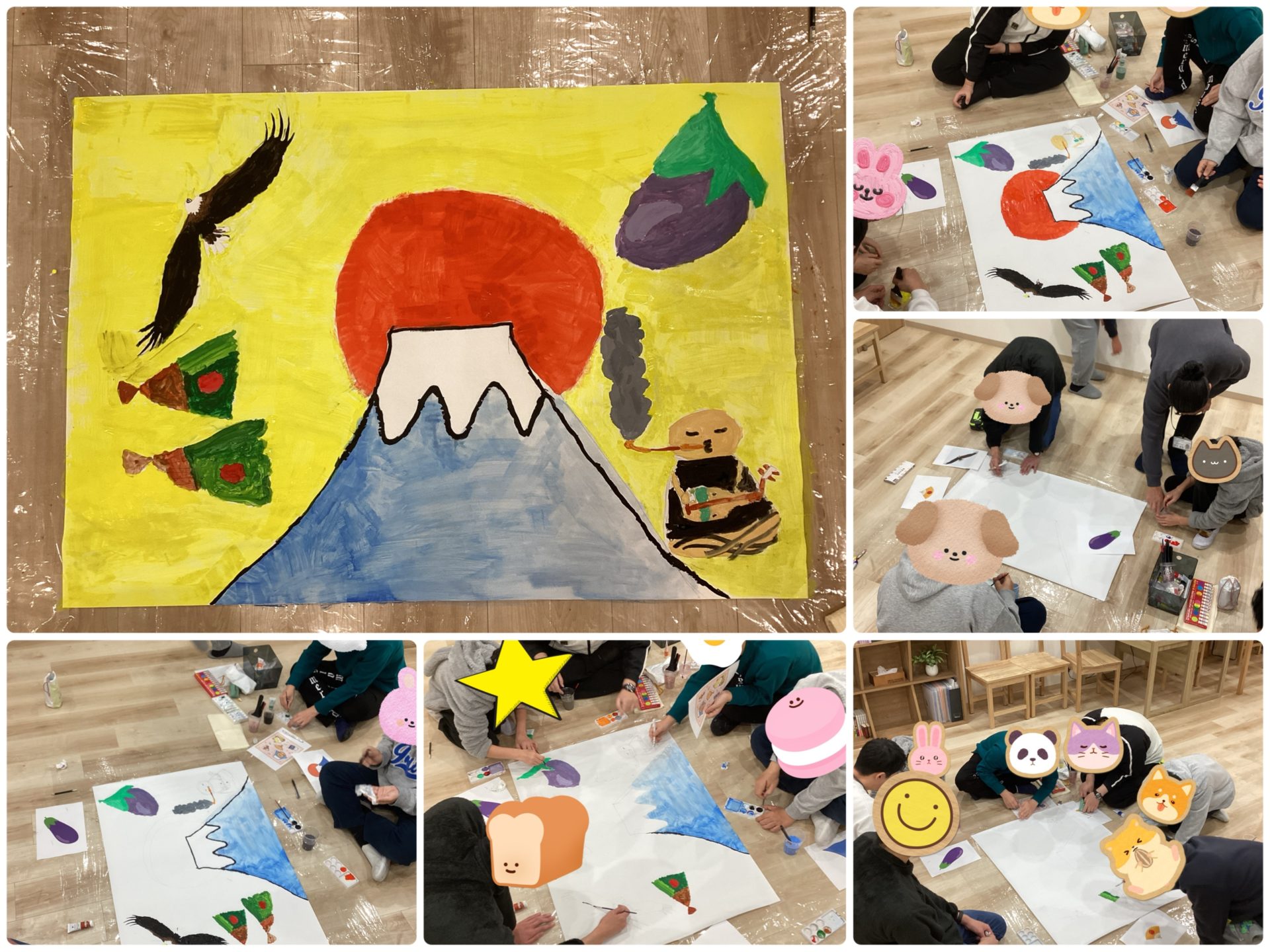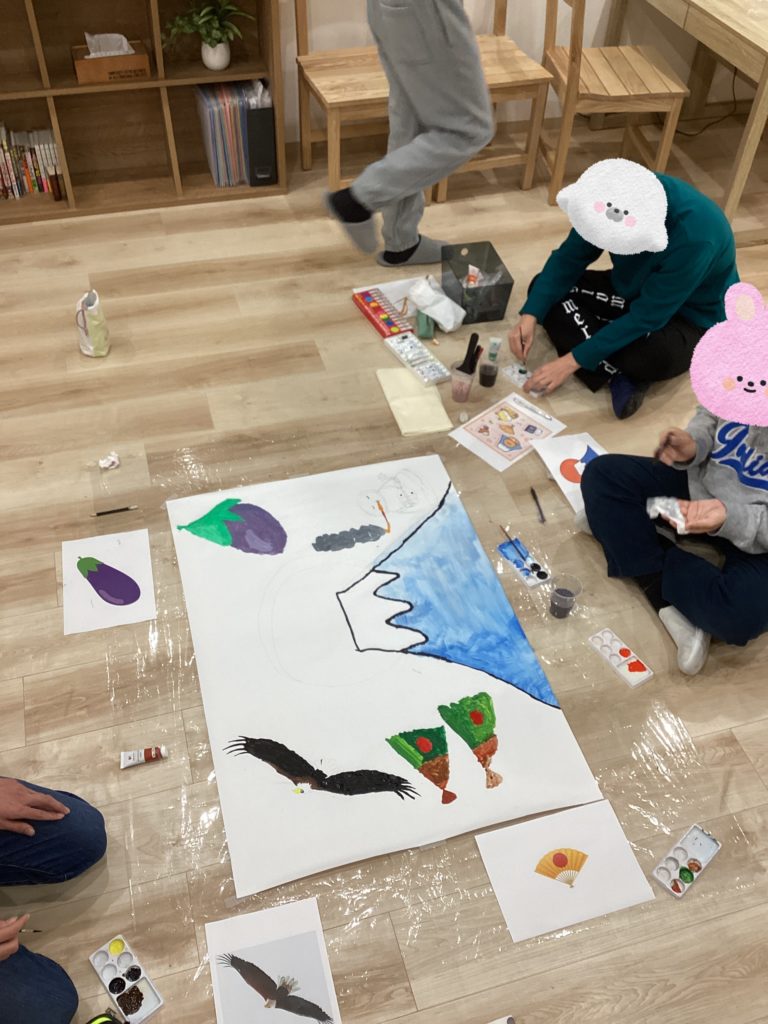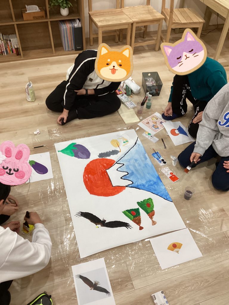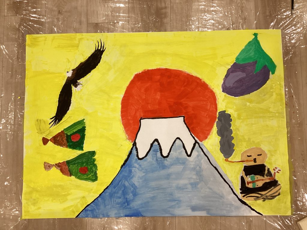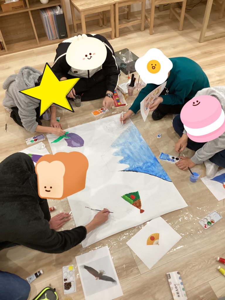 初夢 投稿日 2026年1月20日 著者 staff カテゴリー お知らせ カテゴリー プログラムの様子 ODENでは模造紙を使って初夢アートに挑戦しました!1富士 2鷹 3なすびまでは有名ですが四扇 五煙草 六座頭と続くそうです、、、私は初めて知りました、、、 下書き 担当の絵をパソコンで調べて下書きをしてから、、、 色塗り 下書きに色をつけていく! ★完成★ 最後までみんなで協力しながら制作できました。絵の配置やバランスがよく、縁起良き初夢アートになりました。