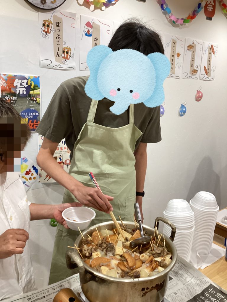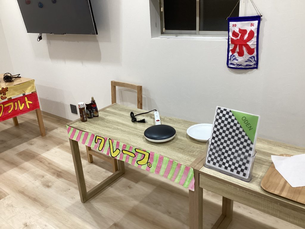 会場には、たこ焼き、おでん、フランクフルト、かき氷、クレープ、ポップコーンなど、お祭りならではのフードメニューがずらりと並びました。