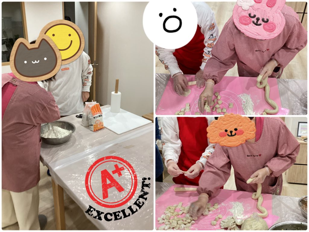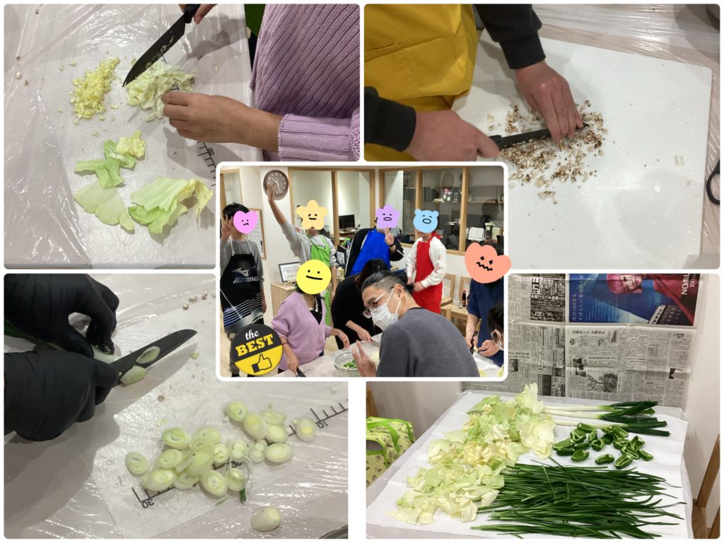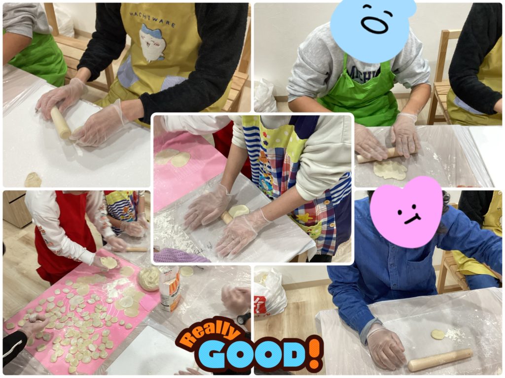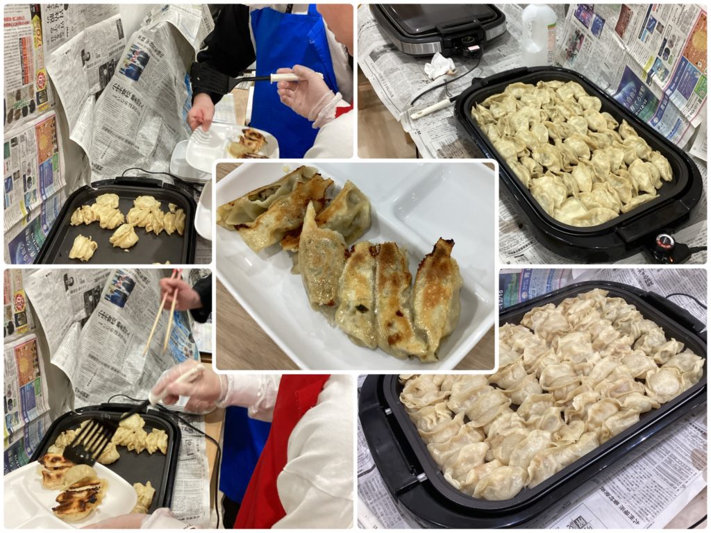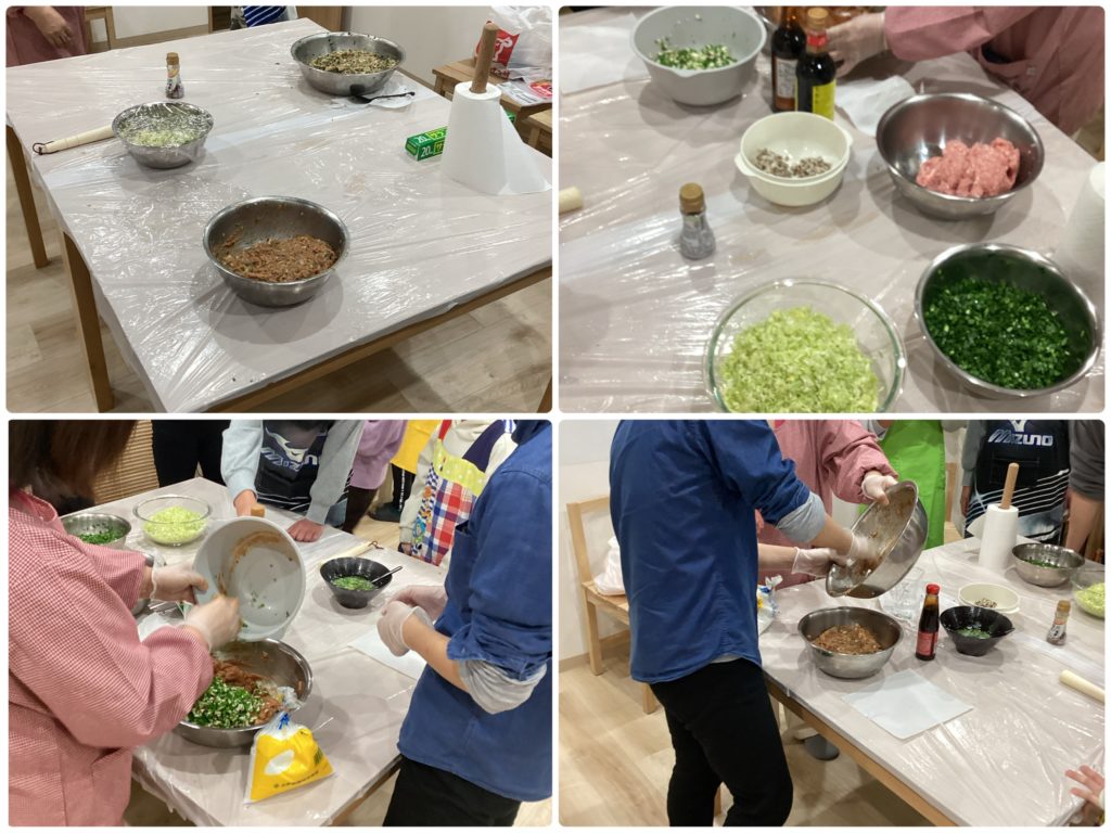みんなで餃子作りに挑戦しました。